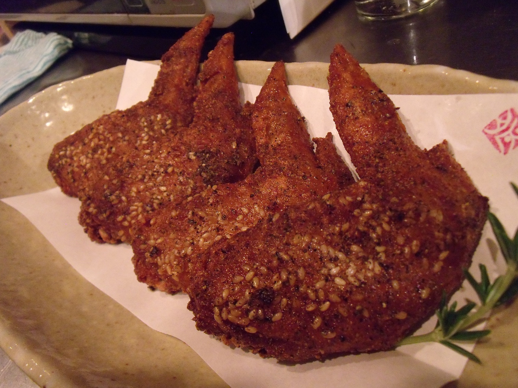 がいじんの手羽は「黒七味」でスパイシーな味付けです(写真参照)