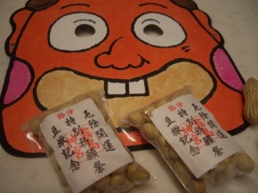 松五郎ごわんど!節分の豆、食べましたか?本日は豆をお客様にプレゼント。常連のドカティさんから霧島神宮の豆まきのおすそ分けを頂きました、写真のように一個一個ていねいにシールが貼られているんですね(知らなかった・・)早く暖かくなーれ・・・