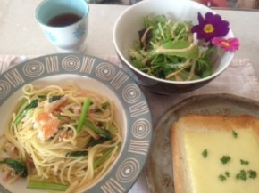 贅沢カニと小松菜のペペロンチーノ