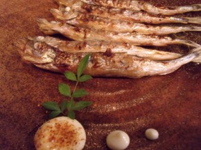 大将が発案の盛付け、お皿とししゃもとマヨネーズのバランスをスタッフが理解して