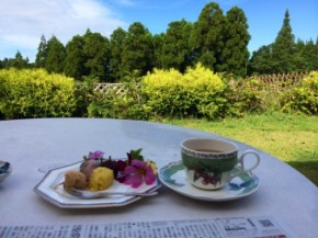 テラスで過ごしてます。と