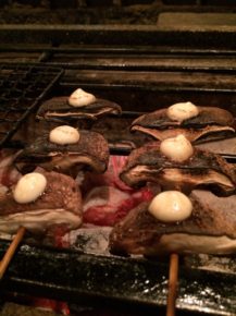 写真はシイタケ串の炭火焼きは香ばしくて美味しいんです。