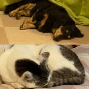 愛犬リンと愛ネコQ太郎は雨で