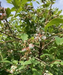 ブルーベリーが梅雨の雨を浴びてすくすく育ってます。