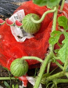 女将のミニミニガーデンに3個目のスイカです。
