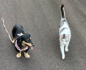 愛犬りんと愛ネコQ太郎とやっと夕方道路の暑さが