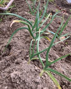 女将のミニミニガーデンはニンニクも元気に育ってます。