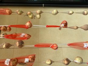 新玉ねぎをつるし保存中