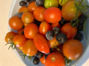ブルーベリーにプチトマト、きゅうりを収穫しました。
