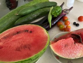 ご近所さんが育てた黄色スイカ頂きました。