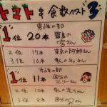 トマト串マイスターの女将です。 最新、トマト串食数ベスト3 店内掲示してます。 いろんなか方が挑戦されますが トマト串キング宮さんの20本は破られる 事は難しいいみ … 続きを読む