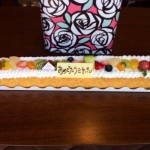 トマト串マイスターの女将です。 大将にお誕生日プレゼント頂きました。 女将の年齢と同じ長さのケーキと 化粧品BOXです。 特注の〇〇㎝長ーいケーキに感激と笑いです。 女将は化粧BOXは お菓子 … 続きを読む