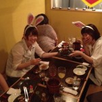 チェコ村で一緒に働いていた Yちゃんの同僚、お二人の誕生会 でした。うさぎ年うまれの大将好みで 無理やり「うさぎカチューシャ」を プレゼント (笑) おめでたう!