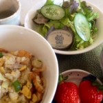 自宅で女将の手作りブランチです。 冷蔵庫の残り物で 具だくさんのチャーハン 半うどん シャキシャキさらだ イチゴ 我ながら美味しい。 久しぶりに大将と一緒のごはんです。 大将は忙しくて「が・・ … 続きを読む